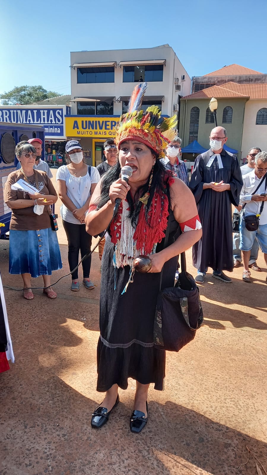 El acto ecuménico en Dourados también concluyó con las intervenciones de los sobrevivientes guaraníes kaiowá y una de esas voces fue de la líder kaiowá Valdelice Veron, de Juti: «Los antimotines vienen a atacar nuestros pueblos, queman nuestras pocas pertenencias, disparan a nuestros niños, jóvenes, mujeres, hombres, ancianos. Acabando con nuestras cosas, nuestras casas de oración, nuestros rincones, nuestros cuadros”. Valdelice pidió ayuda para que se realice la demarcación de las tierras indígenas y la prensa informó que la ADPF – Alegación de Incumplimiento de un Precepto Fundamental de la Vida, fue presentada ante la Corte Penal Internacional, en Bruselas, vinculada a la ONU, ya se ha activado. «La última ayuda cuando no hay otra manera», dijo.
