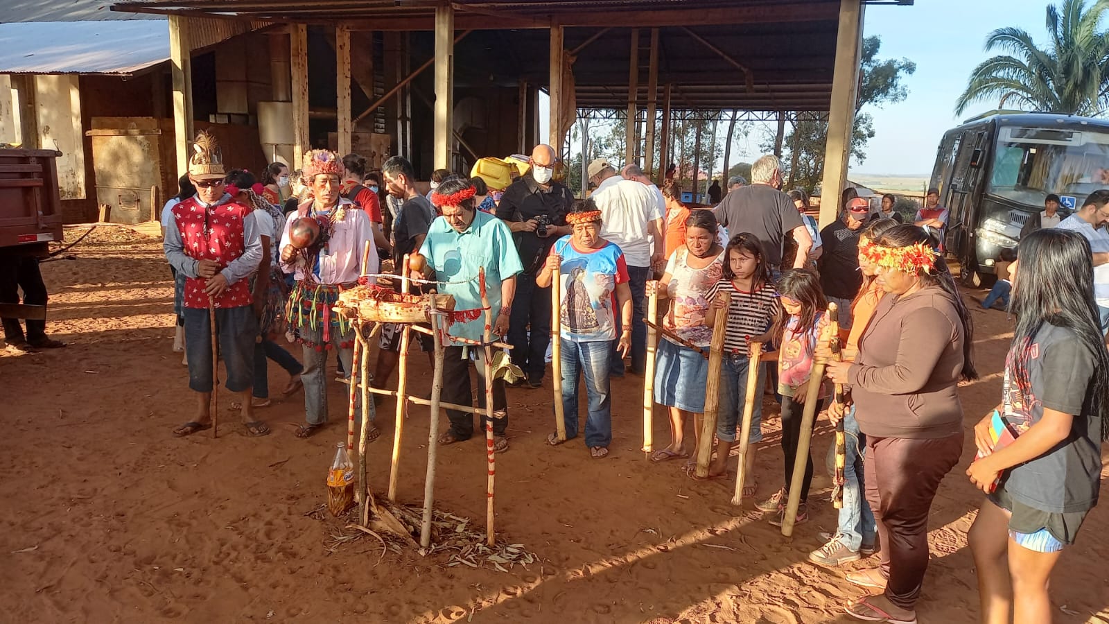 También se hizo entrega de alimentos a la comunidad que reúne alrededor de 80 personas. Como en todas las zonas recuperadas, el gobierno federal ha prohibido el transporte escolar, el saneamiento: suspendidas todas las políticas públicas en las tierras en disputa.