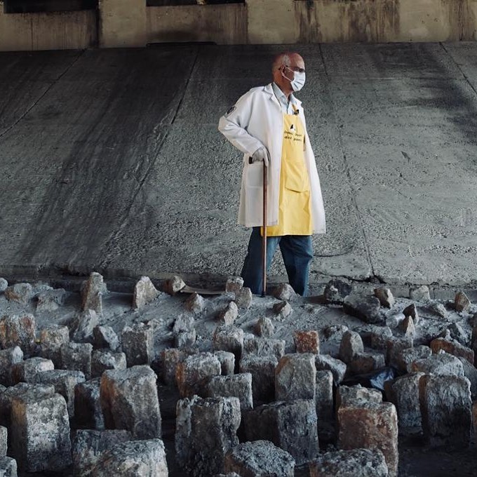 Com uma marreta em suas mãos, lembrando Jesus quando toma o chicote no templo, o sacerdote começa a retirar os paralelepípedos ali colocados pelo poder público, que em vez de agir proativamente para que tais pessoas pudessem ter um lugar digno para viver, preferiu impedi-los, colocando pedras no local que lhes serviam de abrigo.
